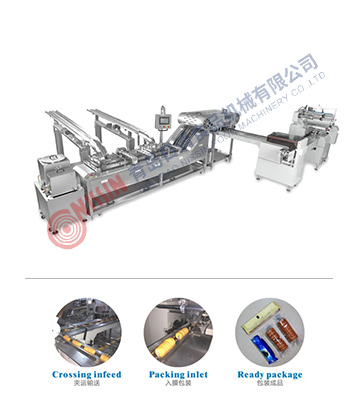 該機是我公司QNF360機型的換代產(chǎn)品。該無托盒包裝機使用伺服電機控制,使該機自動化程度進一步提升、性能更加穩(wěn)定可靠、操作更加簡便。最顯著的特點是:包裝產(chǎn)品尺寸變換非常簡單。 用 途: 適用于多枚餅干的無托盤集合大包裝,方、圓、橢圓等各種形狀餅干皆可。 主要技術(shù)參數(shù): 包裝能力:30-100包/分(據(jù)包裝膜材質(zhì),厚度及包裝規(guī)格確定) 包裝規(guī)格:長100-240mm,寬40-80mm,高40-70mm 總機尺寸:主機部分4020mm*1150mm*1840mm 供料部分3100*580mm*1130mm 裝機總?cè)萘浚?.2KW, 單相 220V, 50Hz 總重量:1200kg 包裝材料:紙/PE,OPP/PE,OPP/AL/PE等適合于加熱封口的包裝材料 機械特性 l 機械結(jié)構(gòu)的整體設計簡單、合理,操作簡便,調(diào)節(jié)方便 l 使用夾運輸送機構(gòu),完全可靠的解決了包裝不同長度物品尺寸變換的繁瑣及倒餅的弊病。 l 縱封裝置采用三對牽引輪構(gòu)成,保證封口高速封合、穩(wěn)定、美觀。 l 精巧的自動供料裝置可將包裝物準確無誤投放于主機進入包裝封口。 l 包裝尺寸調(diào)節(jié)方便快捷。 電氣特性 l 送膜、供料采用數(shù)字伺服電機控制系統(tǒng) l 供料部分采用運動控制單元,供料同步、準確、自動記憶 l 變頻調(diào)速,方便、準確、可靠 l 色表追蹤點自動定位、自動跟標 l 包裝袋自動測量、記憶 l 供料位置即使在運動中也可隨意調(diào)整